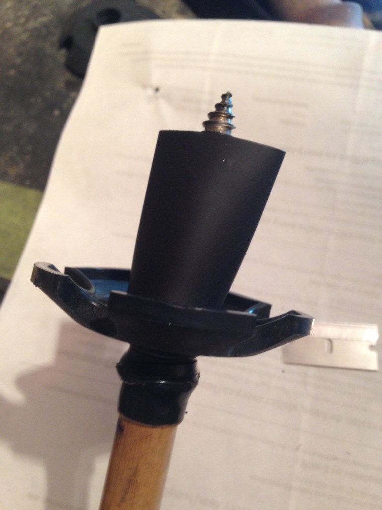 Slide a piece of 1″ diameter shrink wrap over the bamboo tip, so it covers collar of basket and about half of metal screw tip.